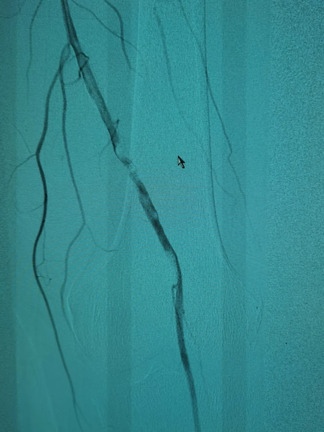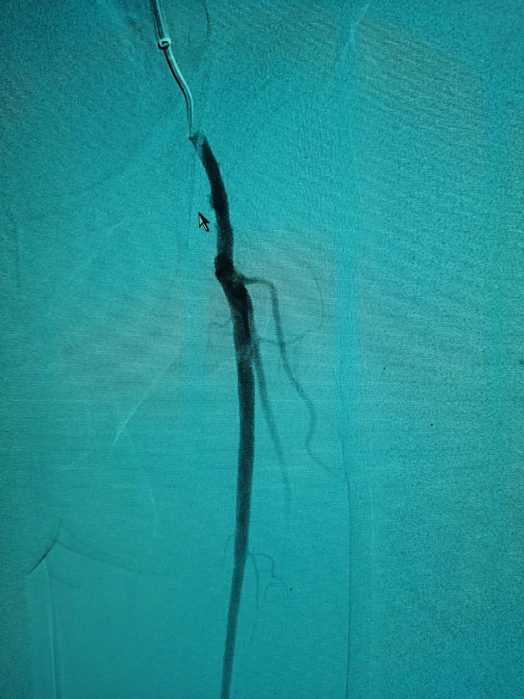 3月中旬,家人帶其到我院神經(jīng)外科治療。“根據(jù)患者的描述,是非常典型的間歇性跛行,我們給他做了雙下肢的血管造影,進一步證實了這一點。”施宏飛主任說,通過影像學(xué)檢查發(fā)現(xiàn),患者血管存在嚴(yán)重鈣化的斑塊,且左側(cè)股總動脈下段中重度狹窄,左側(cè)股淺動脈下段重度狹窄。