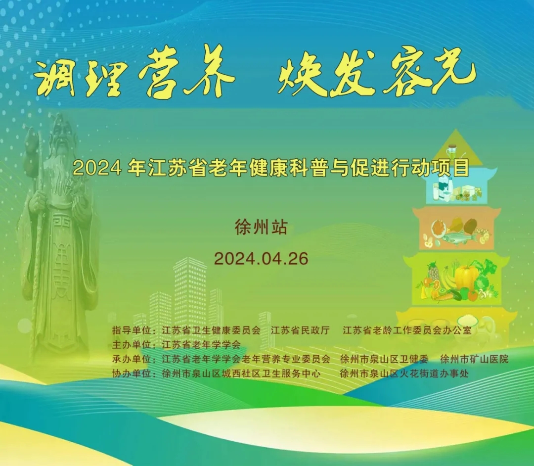 4月26日,由江蘇省老年學(xué)學(xué)會主辦,江蘇省老年學(xué)學(xué)會老年營養(yǎng)專業(yè)委員會、徐州市泉山區(qū)衛(wèi)健委、徐州市礦山醫(yī)院承辦,徐州市泉山區(qū)城西社區(qū)衛(wèi)生服務(wù)中心、徐州市泉山區(qū)火花街道辦事處協(xié)辦的“調(diào)理營養(yǎng) 煥發(fā)容光”2024年江蘇省老年健康科普及促進項目徐州站活動在徐州市泉山區(qū)城西社區(qū)衛(wèi)生服務(wù)中心舉行。本次活動通過現(xiàn)場義診和專家講座等形式,引導(dǎo)老年人關(guān)注營養(yǎng)與健康問題,提高生活質(zhì)量。
