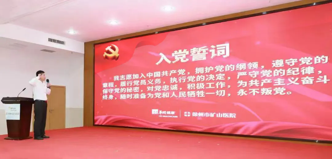 紀委委員、城西黨支部書記張宗雷同志帶領(lǐng)全體黨員面對黨旗,莊嚴宣誓,他們懷著激動的心情高舉右手,面對鮮紅的黨旗重溫入黨誓詞,在錚錚誓言中感悟到中國共產(chǎn)黨人的堅定信仰,更感受到在新時期做為一名共產(chǎn)黨員的驕傲和自豪。鏗鏘有力、振奮人心的宣誓聲久久回蕩,時刻提醒著全體黨員初心如磐、使命在肩,展示了徐州市礦山醫(yī)院全體黨員為黨和人民的事業(yè)奮斗終身的不變理想和追求。