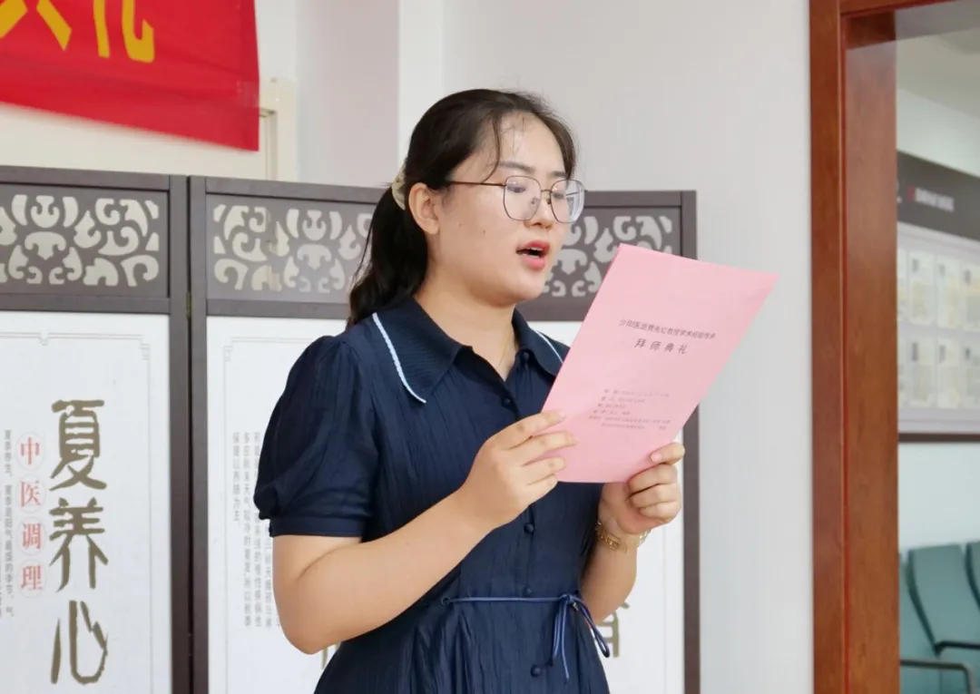 “中醫(yī)傳統(tǒng)拜師禮”承載著中醫(yī)文化教育的魂脈,是培養(yǎng)中醫(yī)人才不可或缺的傳統(tǒng)儀式。一鞠躬,岐黃妙道,薪火相傳;再鞠躬,師恩深重,如海如山;三鞠躬,師生攜手,共澍蒼生。師生用最傳統(tǒng)和最隆重的儀式堅定傳承發(fā)展中醫(yī)藥國粹的文化自覺和文化自信。