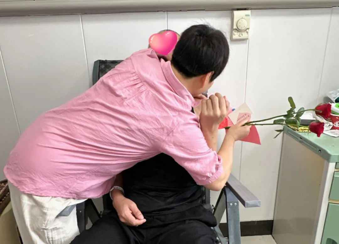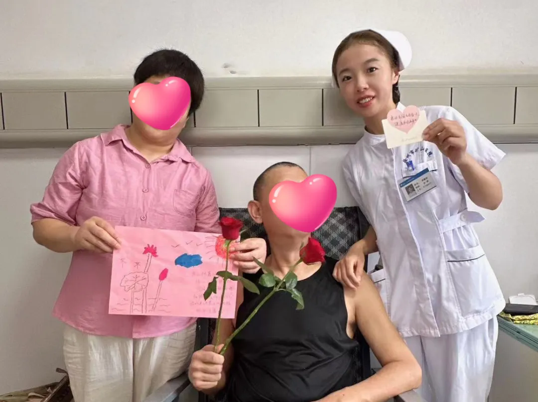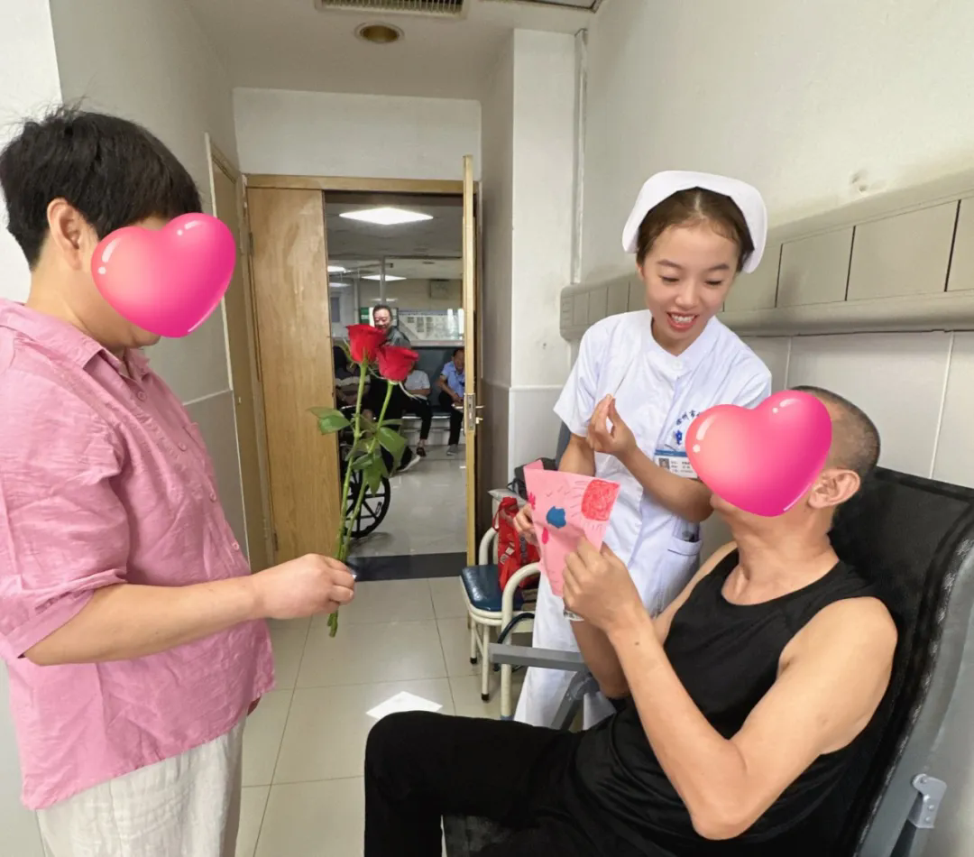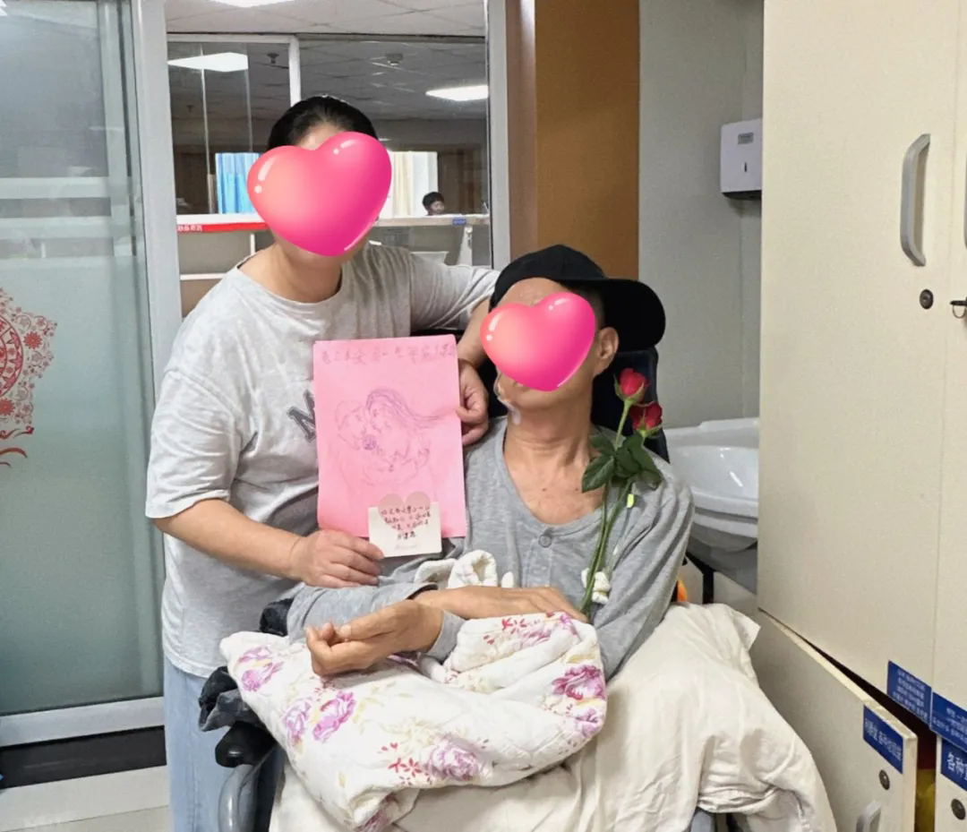 簡(jiǎn)短、淳樸的語(yǔ)言流露著妻子對(duì)丈夫最真摯的祝福。妻子不僅手繪了一幅畫(huà),還手工制作了一朵玫瑰花,丈夫拿著這份禮物,開(kāi)心的合不攏嘴,讓這份心意化作無(wú)窮無(wú)盡的力量,助力他與病魔抗?fàn)帯?/div>