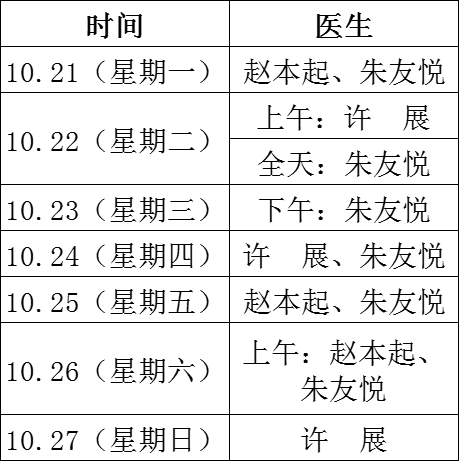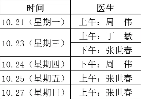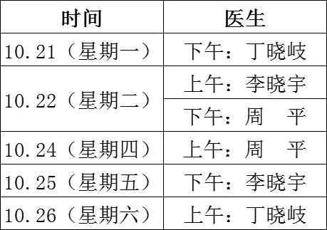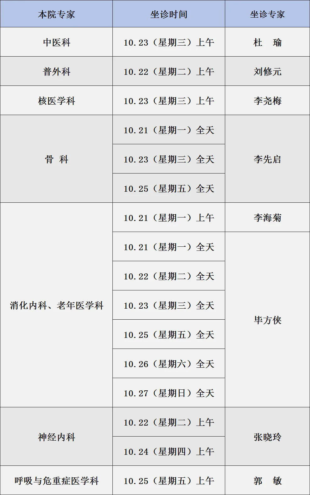 為了讓您能夠更便捷地獲取優(yōu)質醫(yī)療服務,我們特別為您整理了2024年10月21日至10月27日這一周的專家出診信息。我們始終秉持著以患者為中心的服務理念,致力于為您的健康保駕護航,希望這份詳細的坐診安排能幫助您合理規(guī)劃就醫(yī)時間,讓您在需要的時候能夠及時得到專業(yè)的診療。祝您身體健康!