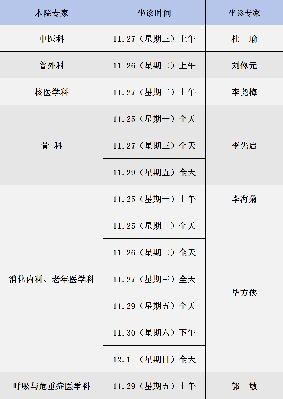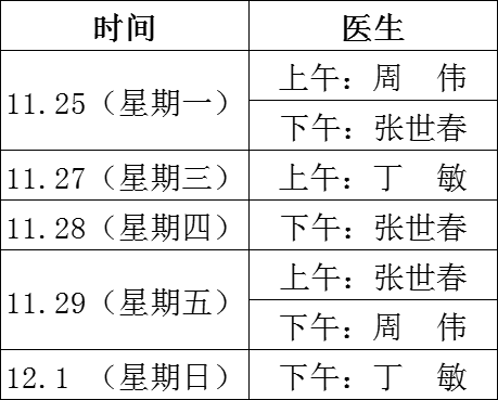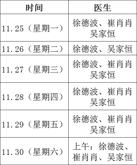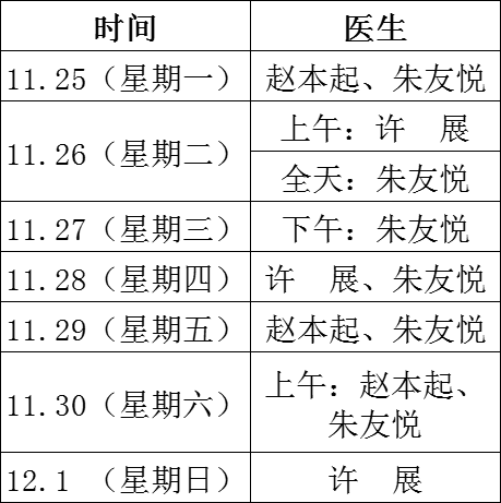 為了讓您能夠更便捷地獲取優(yōu)質(zhì)醫(yī)療服務(wù),我們特別為您整理了2024年11月25日至12月1日這一周的專家出診信息。我們始終秉持著以患者為中心的服務(wù)理念,致力于為您的健康保駕護航,希望這份詳細的坐診安排能幫助您合理規(guī)劃就醫(yī)時間,讓您在需要的時候能夠及時得到專業(yè)的診療。祝您身體健康!