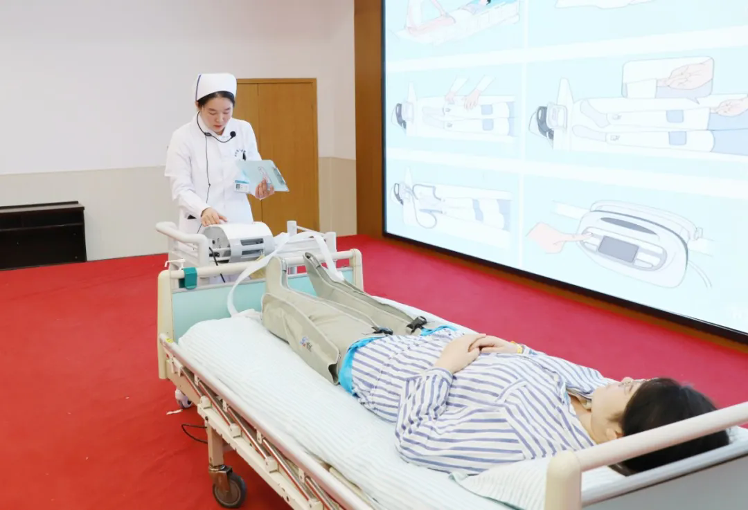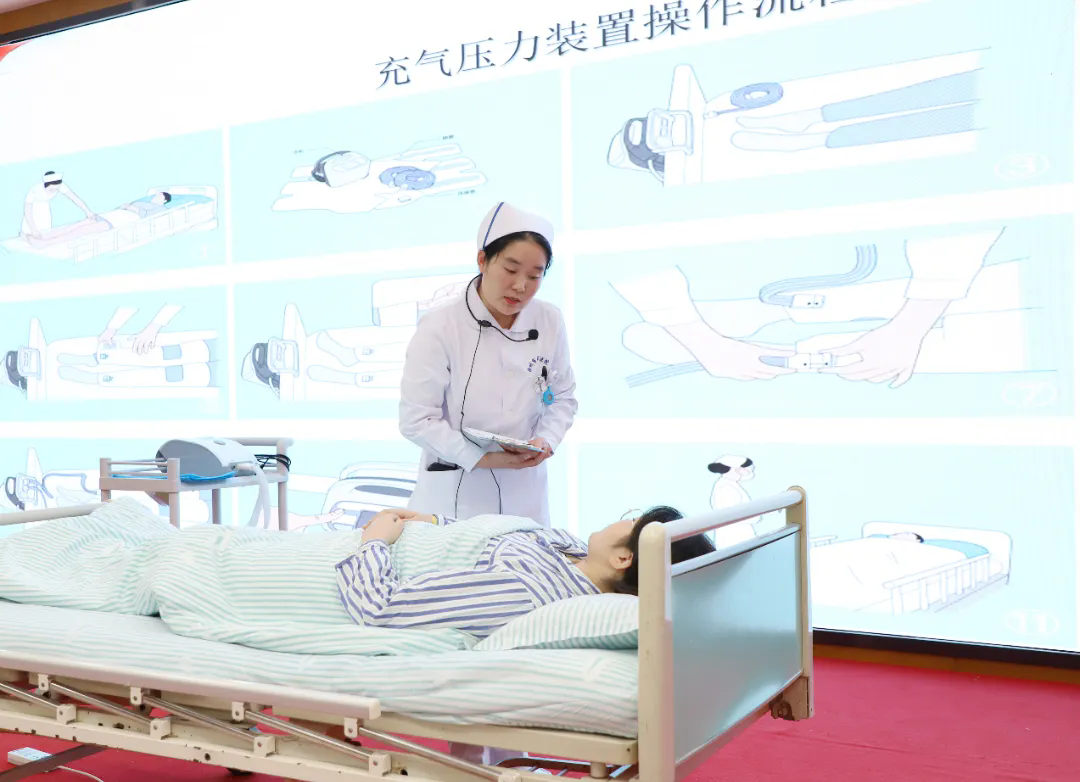 為了讓大家能夠更好地吸收所學知識,血栓預防小組成員以現(xiàn)場演示與情景模擬的形式,生動展示了充氣壓力泵的使用。