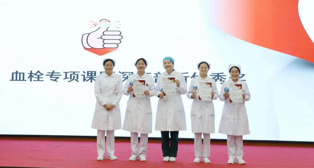 通過激烈的角逐,由歐林雪、徐蘇明、金玉慧、胡倩等護士組成的外科組及由張璇、張珊、王甜甜、馬冰等護士組成的內科組獲得“血栓專項課題深度剖析優(yōu)秀獎”。