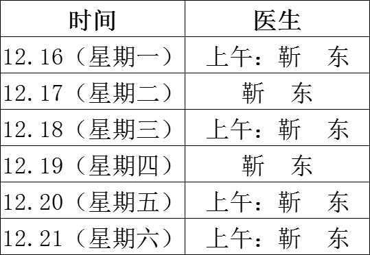 為了讓您能夠更便捷地獲取優(yōu)質(zhì)醫(yī)療服務(wù),我們特別為您整理了2024年12月16日至12月22日這一周的專家出診信息。我們始終秉持著以患者為中心的服務(wù)理念,致力于為您的健康保駕護(hù)航,希望這份詳細(xì)的坐診安排能幫助您合理規(guī)劃就醫(yī)時(shí)間,讓您在需要的時(shí)候能夠及時(shí)得到專業(yè)的診療。祝您身體健康!