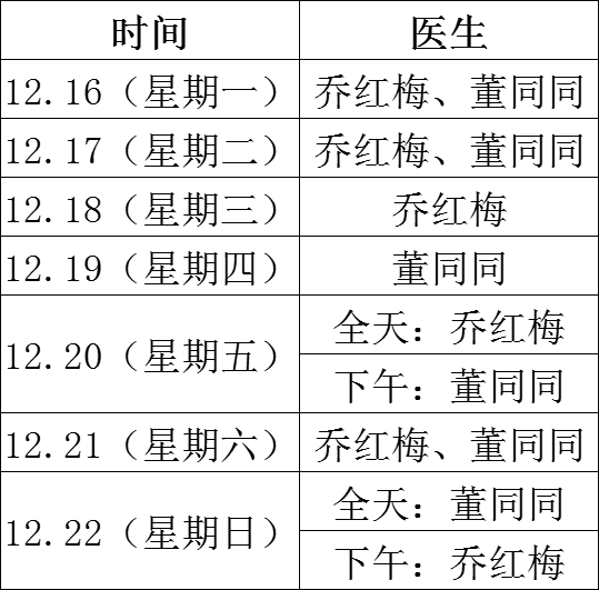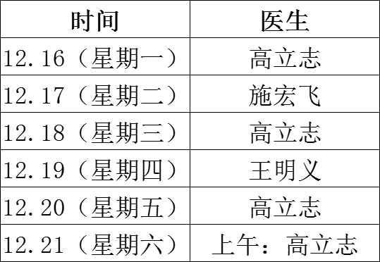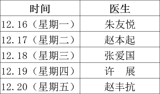 名醫(yī)專家坐診信息一覽表