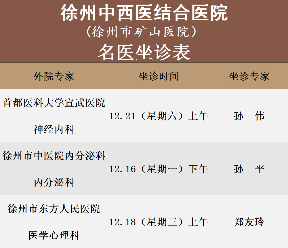 徐州中西醫(yī)結(jié)合醫(yī)院各科室門診坐診表