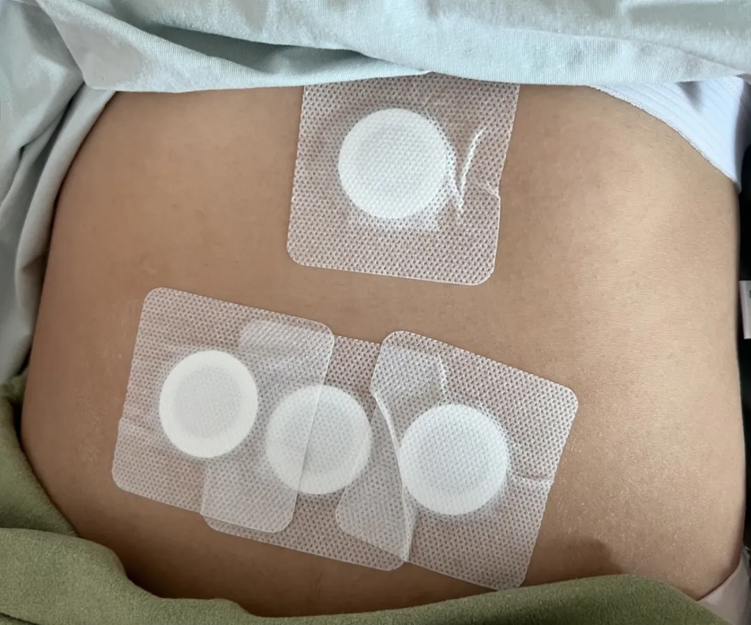 入院后完善相關(guān)檢查,發(fā)現(xiàn)秦女士尿酮體3+mmo/L,肝、腎功能均有不同程度損傷及電解質(zhì)系亂。婦產(chǎn)科主任于光霏接診后詳細(xì)查看檢查結(jié)果并問詢秦女士病史及之前的治療方案。綜合考慮后,建議其中西醫(yī)結(jié)合治療。西醫(yī)上以止吐、保胎、提供能量支持、糾正電解質(zhì)紊亂等治療,同時(shí)邀請(qǐng)中醫(yī)科副主任醫(yī)師許展前來會(huì)診。許展副主任醫(yī)師望診時(shí)見其精神萎靡,面色萎黃,結(jié)合舌脈象辯證為肝胃不和,建議服用中藥加味溫膽湯調(diào)理,同時(shí)予中藥穴位敷貼、耳穴壓丸治療。
