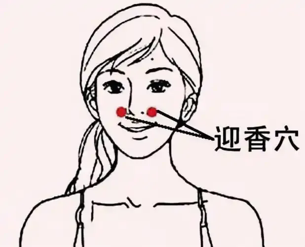 用兩手的食指按住鼻翼兩側(cè)的迎香穴,然后按照順時(shí)針和逆時(shí)針?lè)较蚋鞔昴?6次,會(huì)有酸脹感向額面放射。