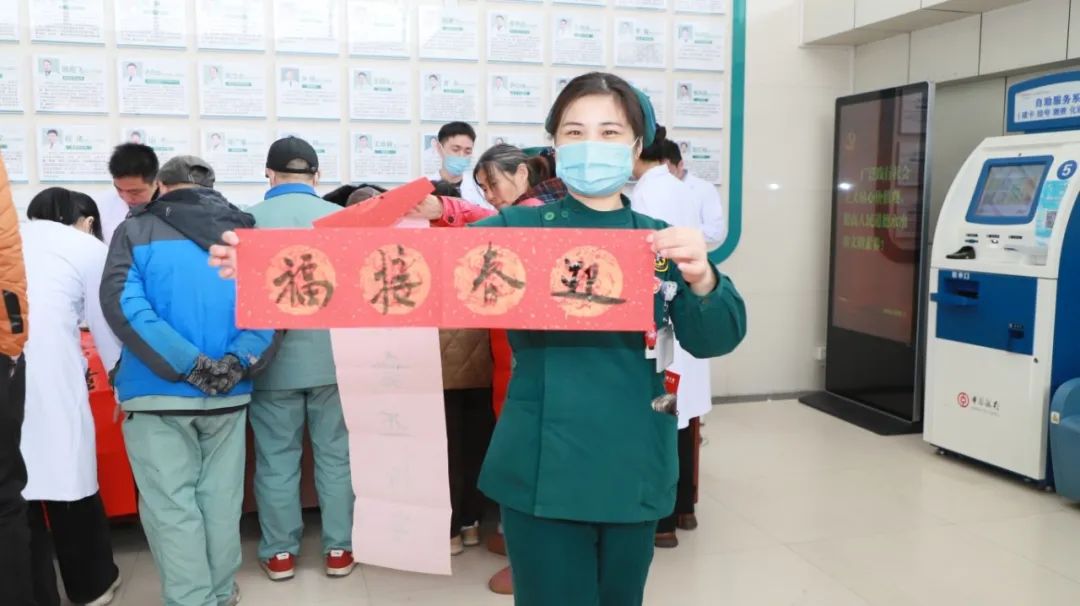 貼春聯(lián)、寫福字是中華民族的傳統(tǒng)習(xí)俗,甲辰龍年到來之際,我院工會組織書法愛好者們在醫(yī)院門急診大廳一樓手寫春聯(lián)、“福”字,贈送給醫(yī)務(wù)人員、患者及來往市民。