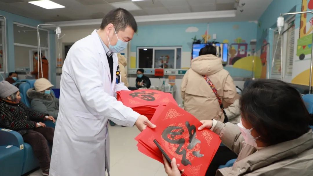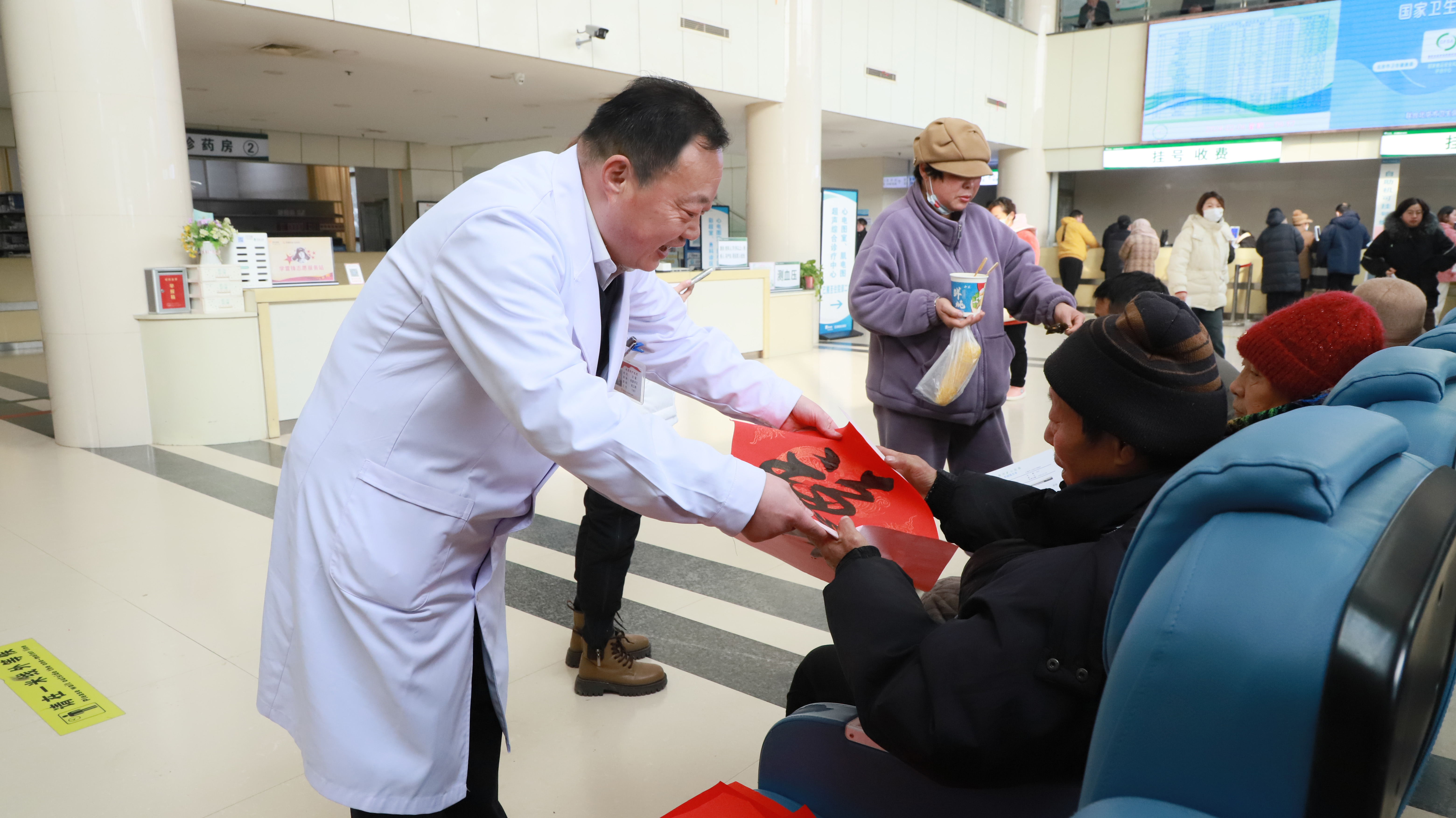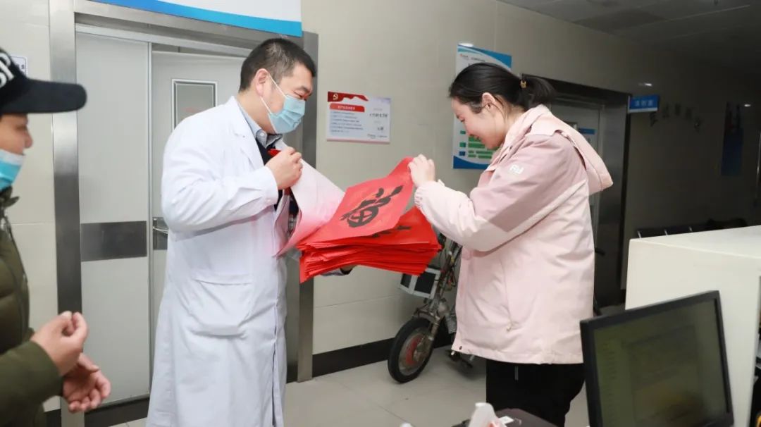 活動現(xiàn)場,黨委委員、紀(jì)委書記、工會主席汪猛,黨委委員、副院長李堯梅帶領(lǐng)志愿者為病區(qū)值班人員、住院患者,為門診出診專家、候診患者等送上了對聯(lián)和“福”字,帶去喜慶祥和和濃濃祝福——但愿美好常在,歲月常新,幸福健康常相伴。